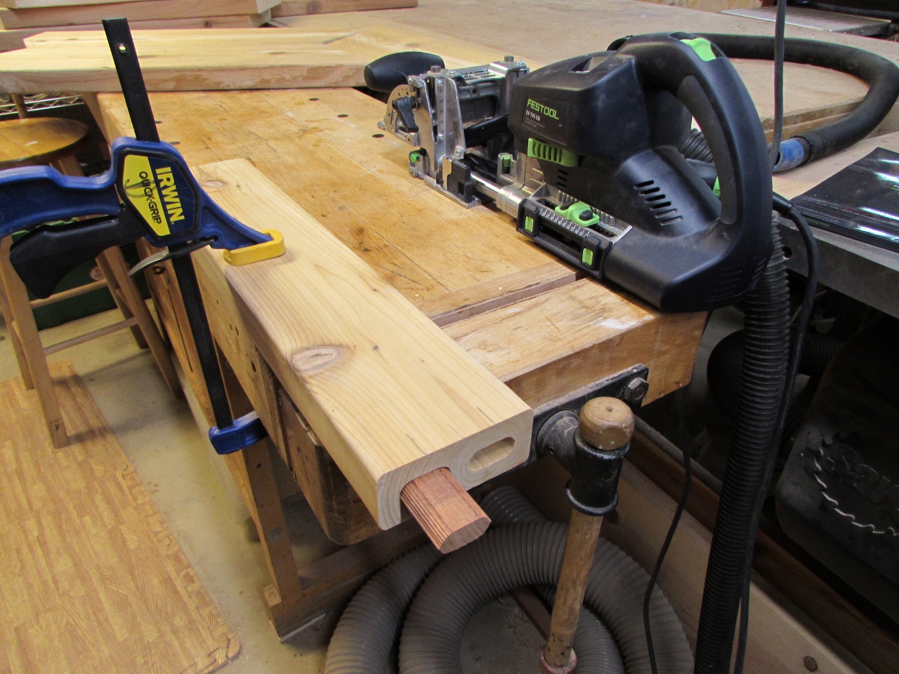 I borrowed my buddy Dave’s big Festool Domino for the joinery. By laying out the radius of the arch, I got a basic idea where the Dominos would fit. We are using two 40mm Dominos for each butt joint. These joints could alternatively have been done with dowels, or half laps, but this is faster, and really strong.