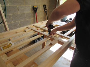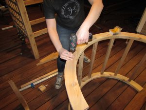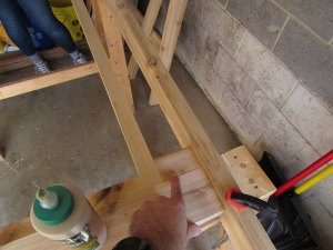 While that was curing, we applied glue and a single screw to hold each arch cross-bar in place.