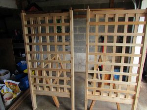 Erin and I did a little math and created some spacer blocks to evenly space the lattice strips.