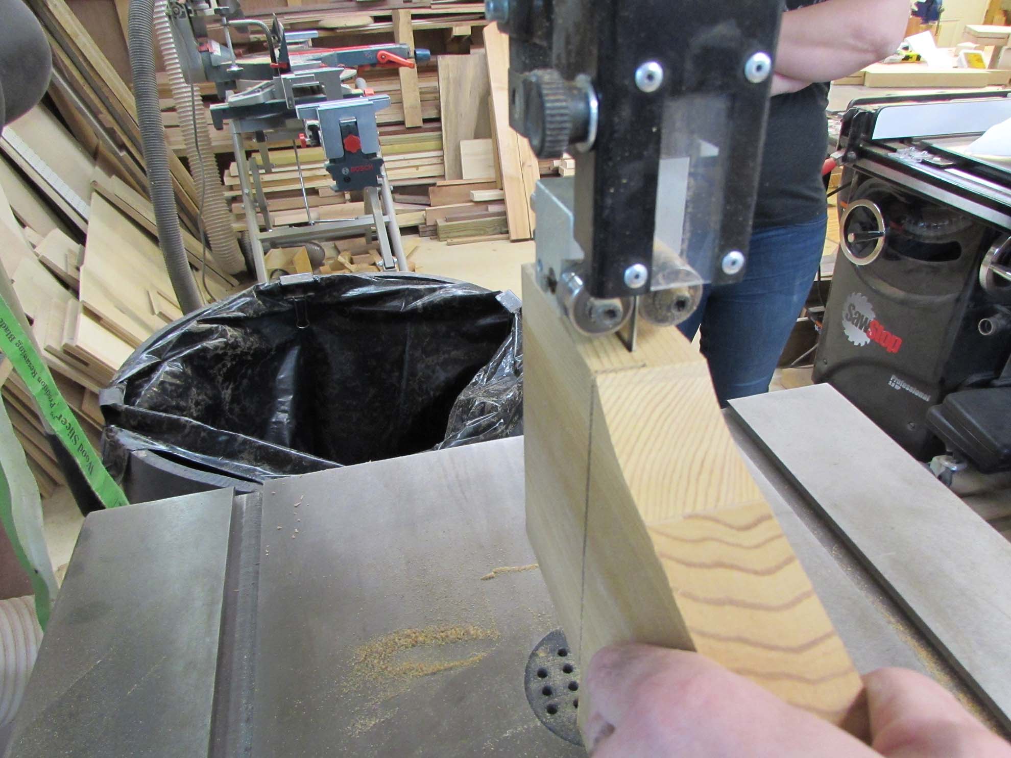 After a successful test fit, we took it all apart and headed to the band saw to cut out the curve.