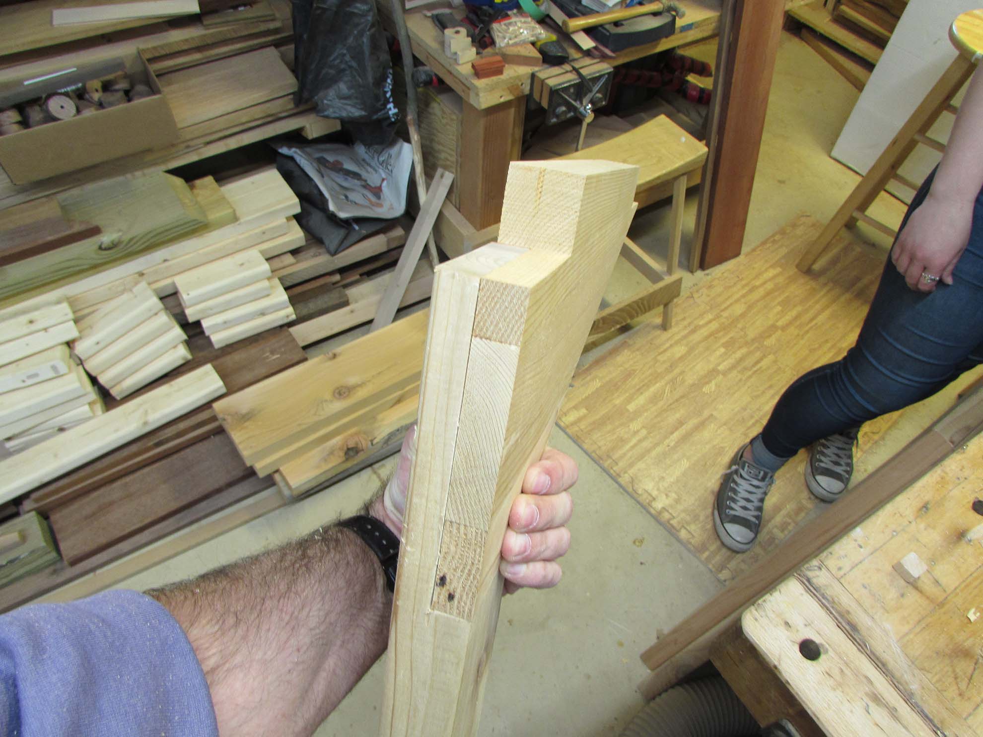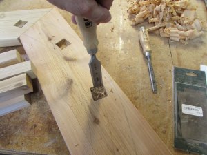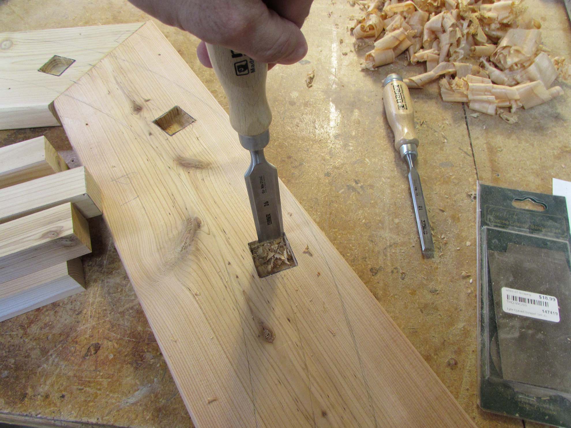 Then we broke out the chisels and cleaned up the holes and squared off the corners, getting a good, tight fit for each bar.