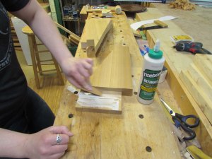 More cutting and glueing and the seat frame was clamped into place to dry.