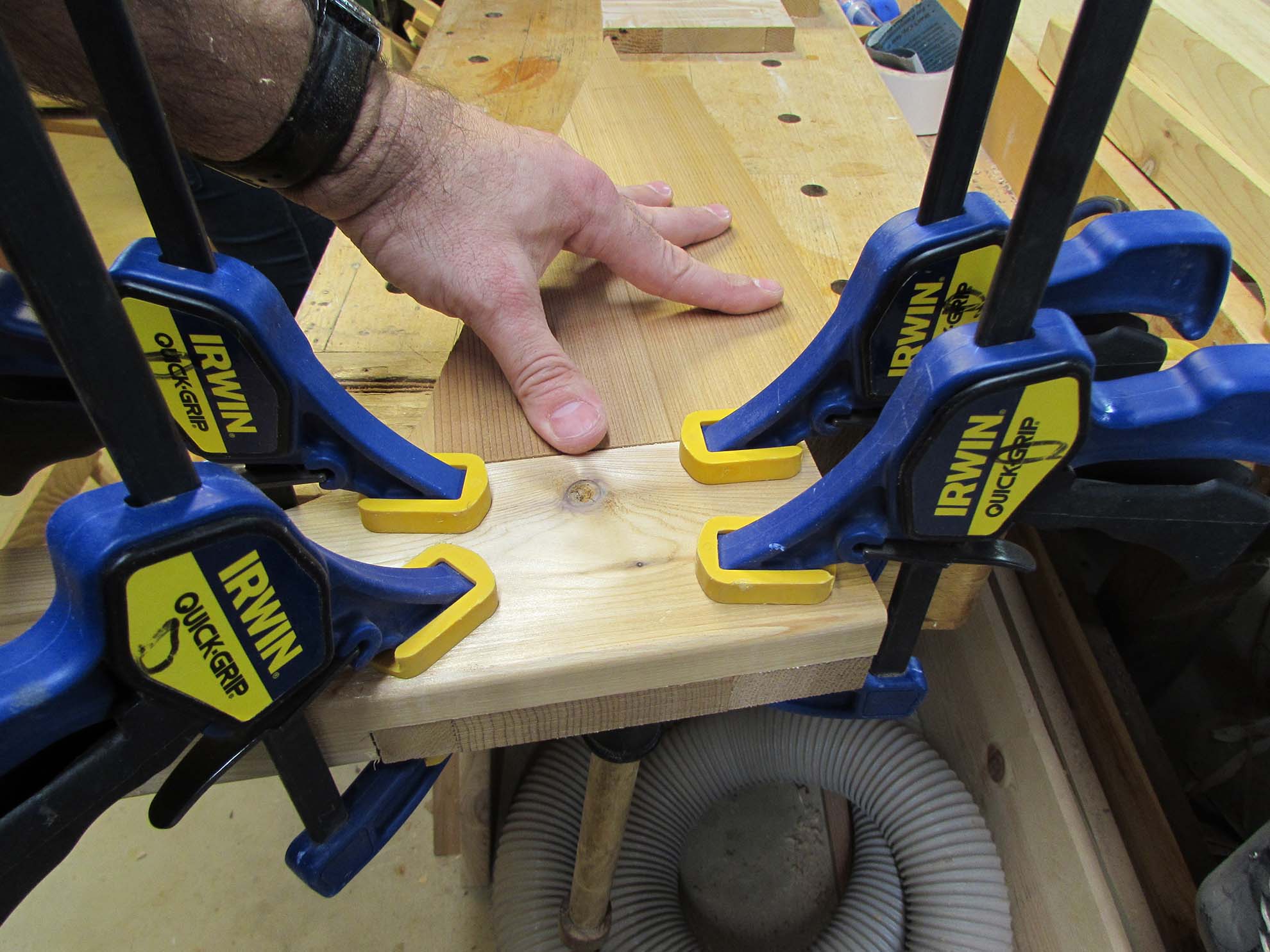 I clamped the seat supports in place to mark the locations of the 2″x4″s that will support the seat.
