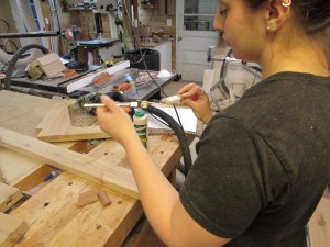 Then lots of sanding to clean up our pencil marks and glue squeeze-out.