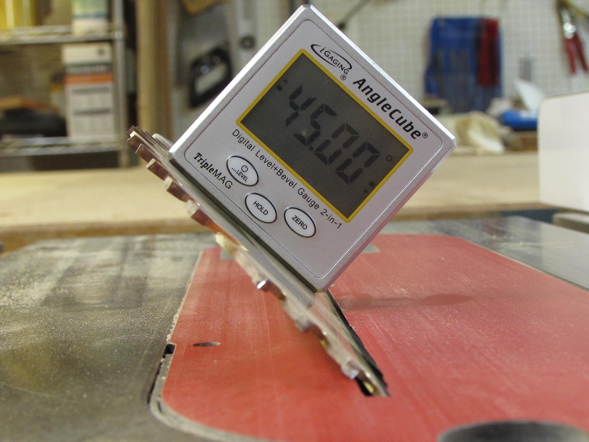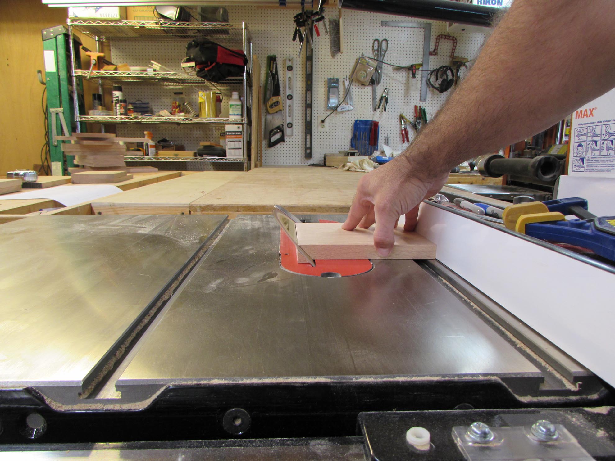 I set my table saw blade to 45 degrees and started cutting my boxes to size.