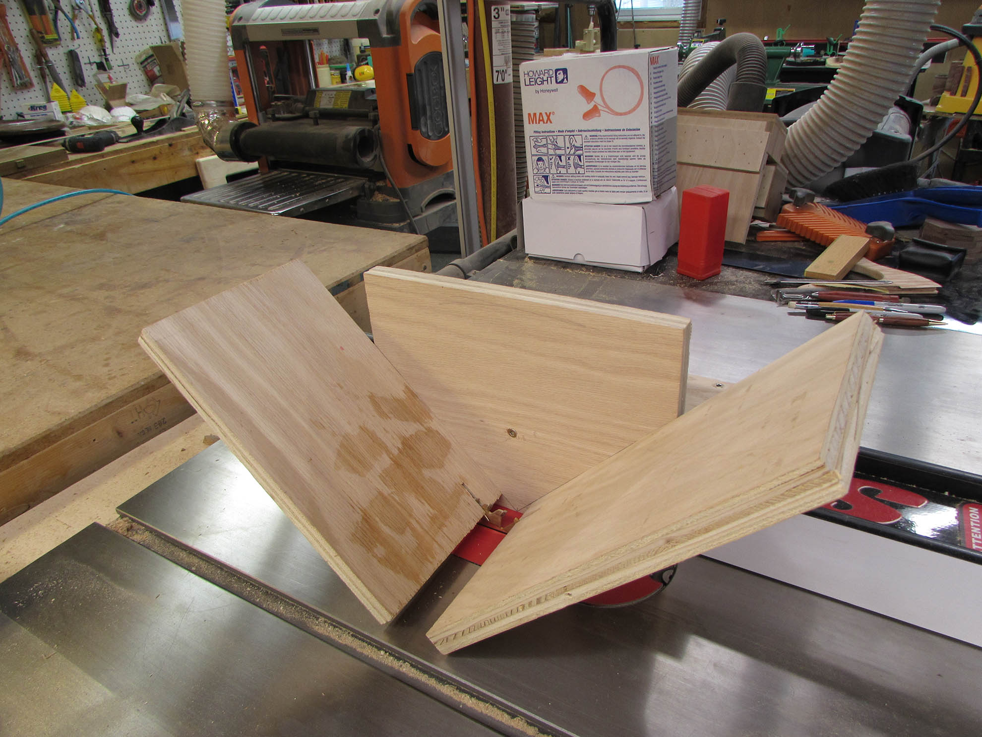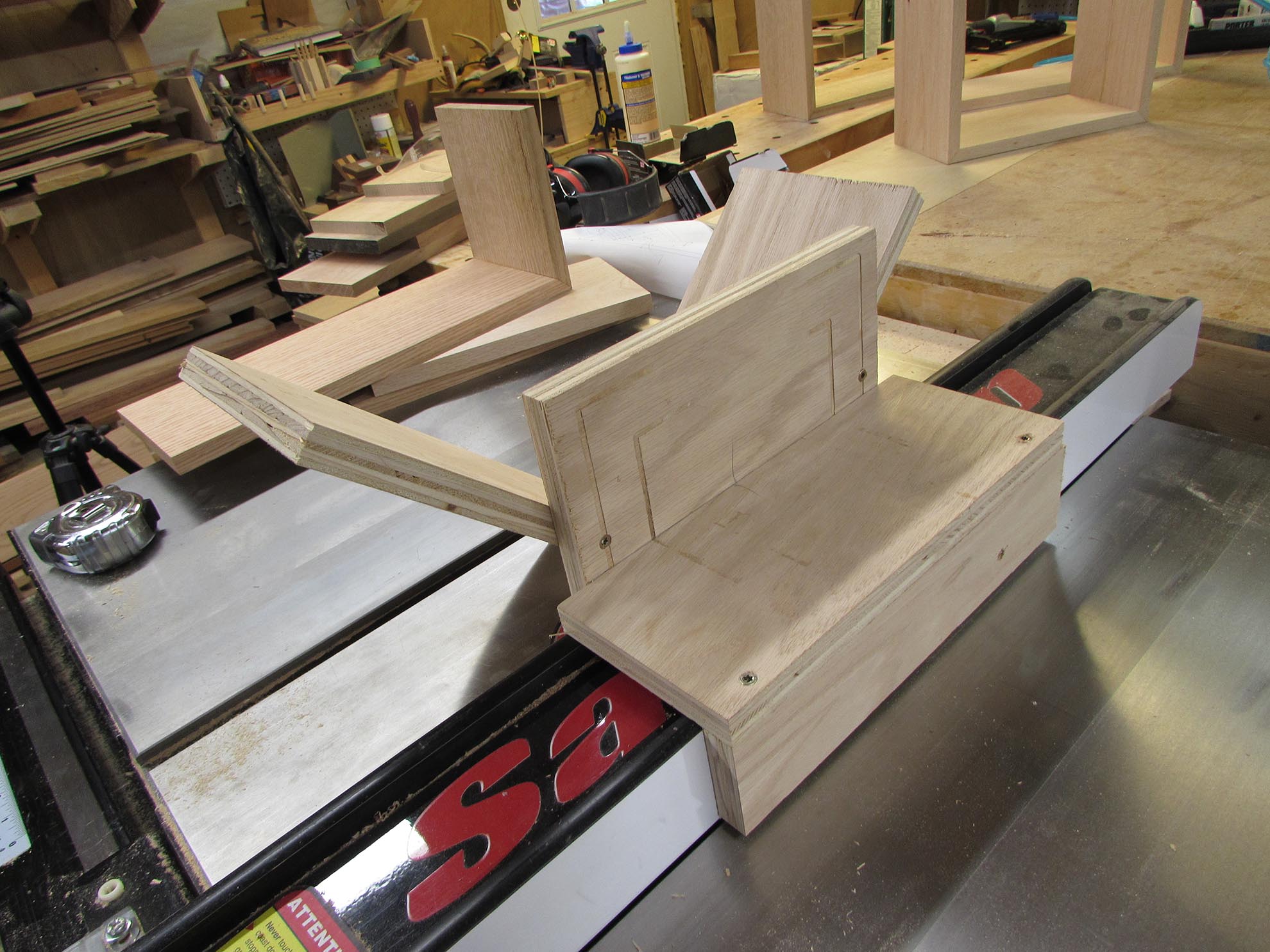 I used some scrap plywood to make a spline cutting jig, for the table saw.
