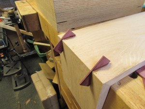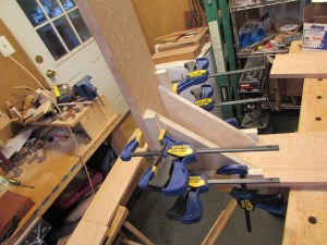 Next, I clamped two pieces together, using some home-made clamping squares.