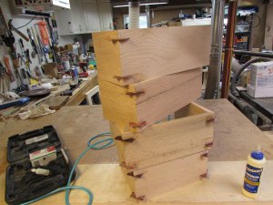 With everything milled to size, I started cutting my shelves to length. I started with the boxes.
