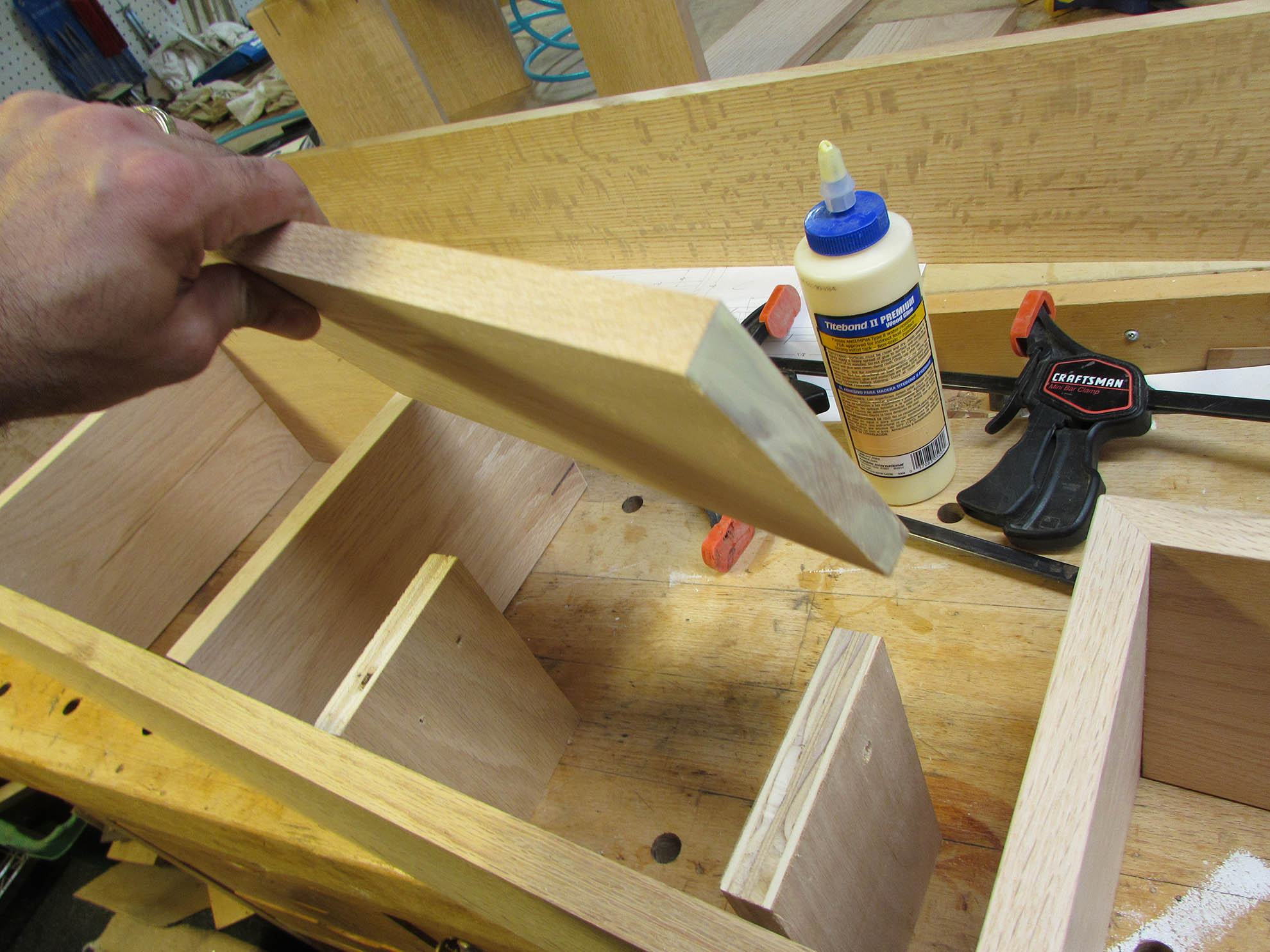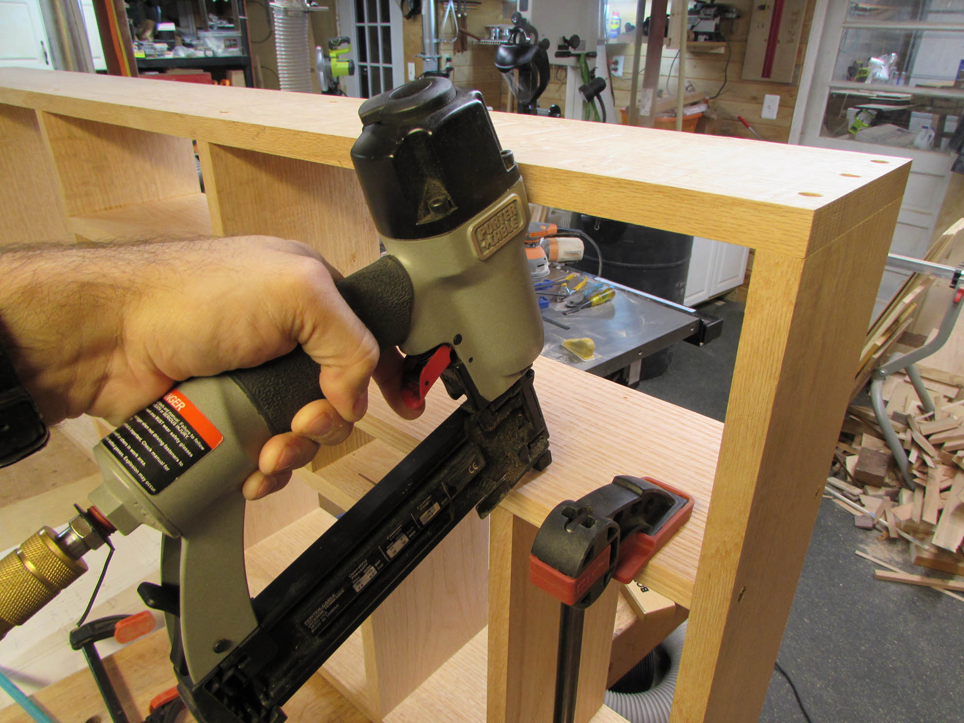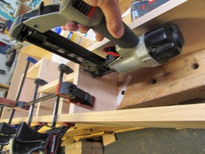 After gluing and clamping them in place, I used my 18 gauge brad nailer to pin them in place until the glue dried.