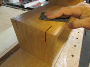 After the second coat is dry, I rub all the finished surfaces down with some brown paper to buff it out and smooth away any dust nibs that stuck to the finish while it dried.