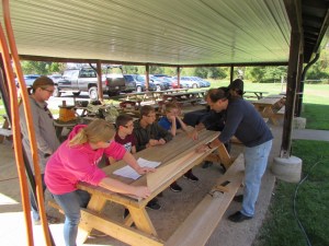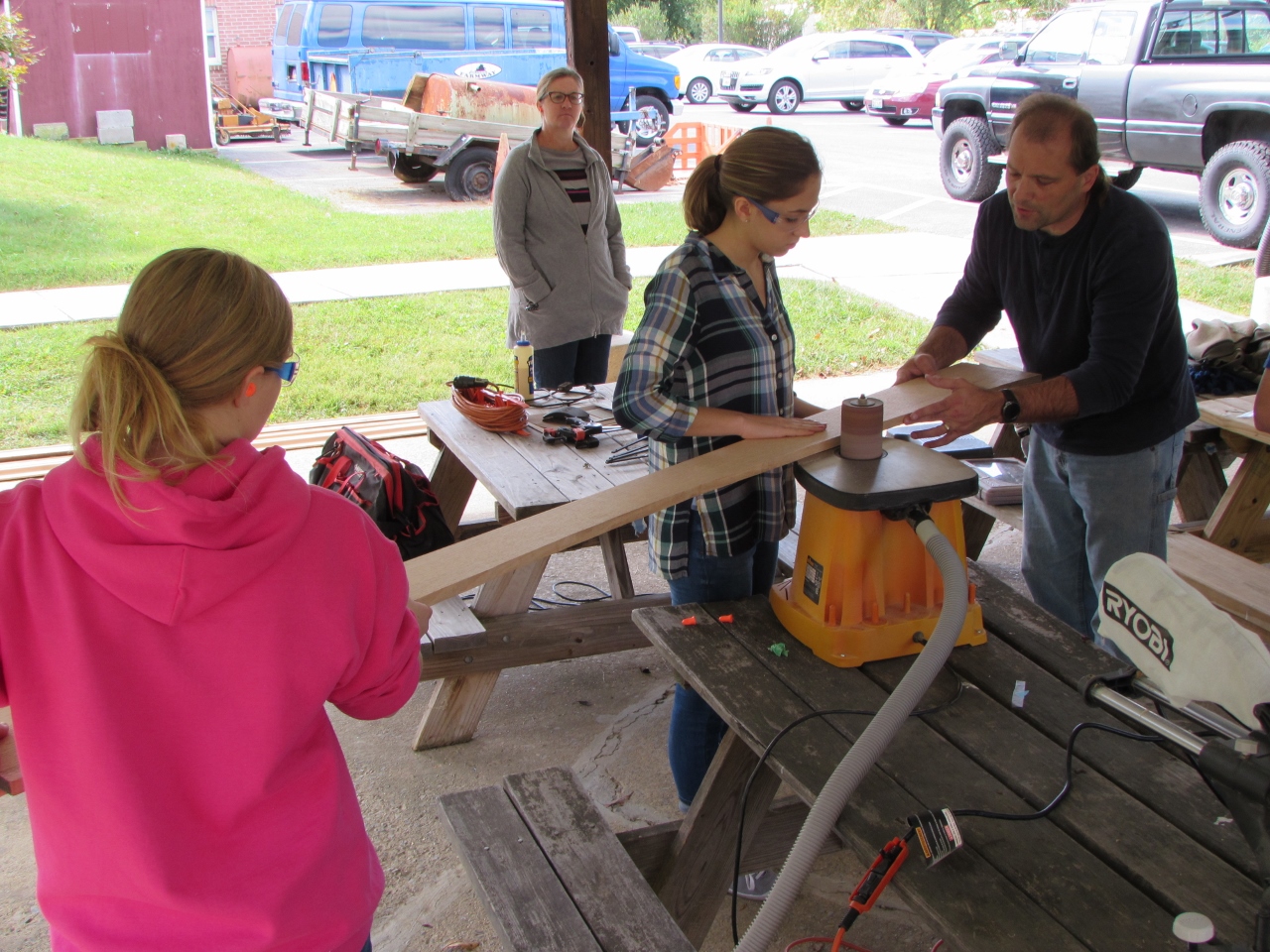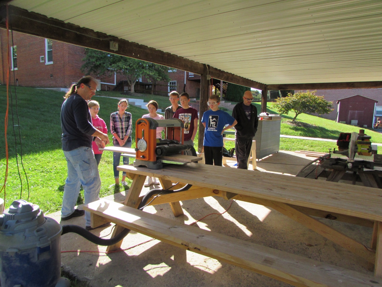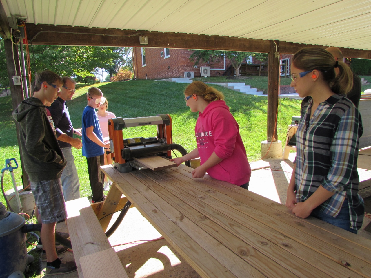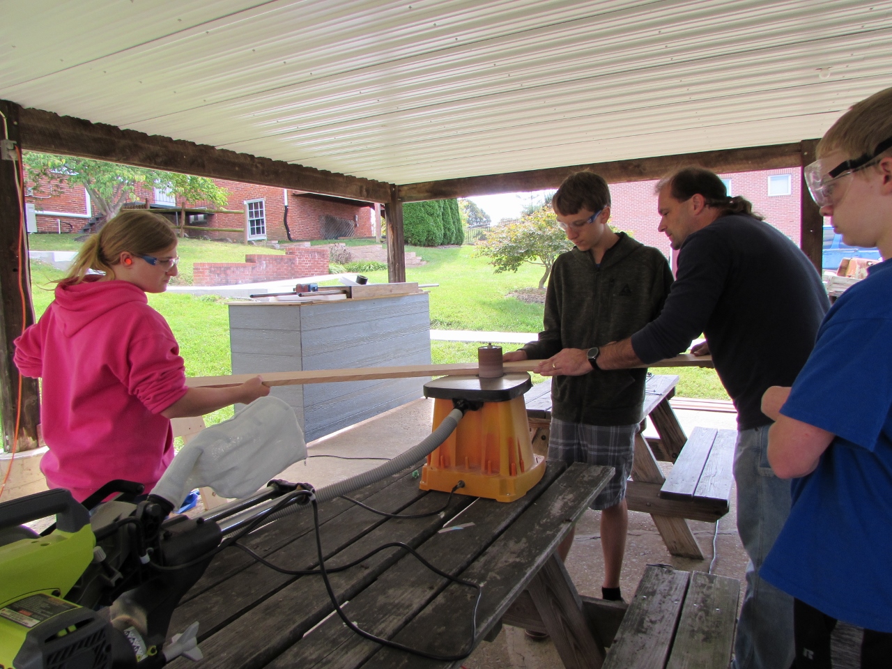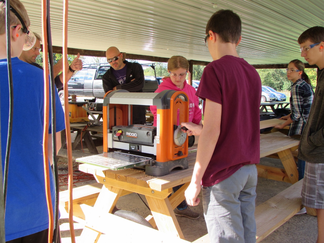 All of the kids were amazed at the amount of saw dust that was generated with planing down just six boards. I had to empty my large shop vac twice. We completely filled a 40 gallon trash bag, which one person took home for their animals to bed down in.