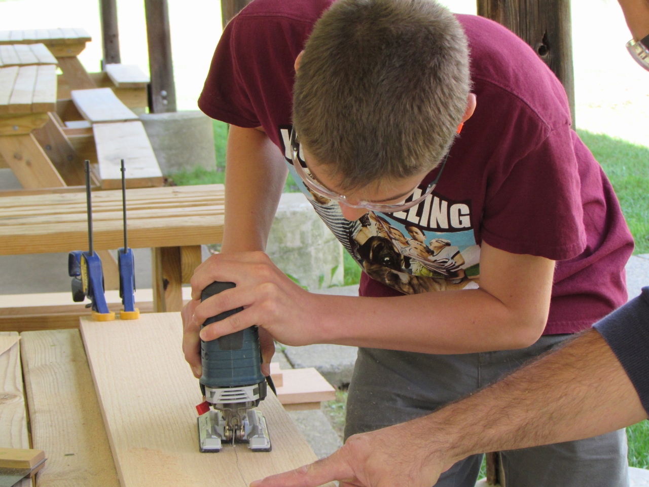 Then I had each kid try cutting along the curve with a jigsaw. They did a remarkably good job staying on the line.