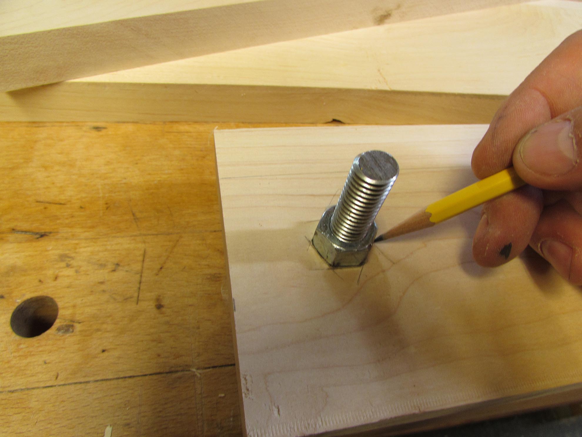 After a quick dry-fit, I marked the edges of the two nuts that will be pressed-fit into the first jaw.