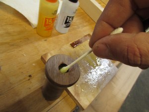 I mixed up some 15 minute epoxy and applied it to the nuts and the inside of the handles.