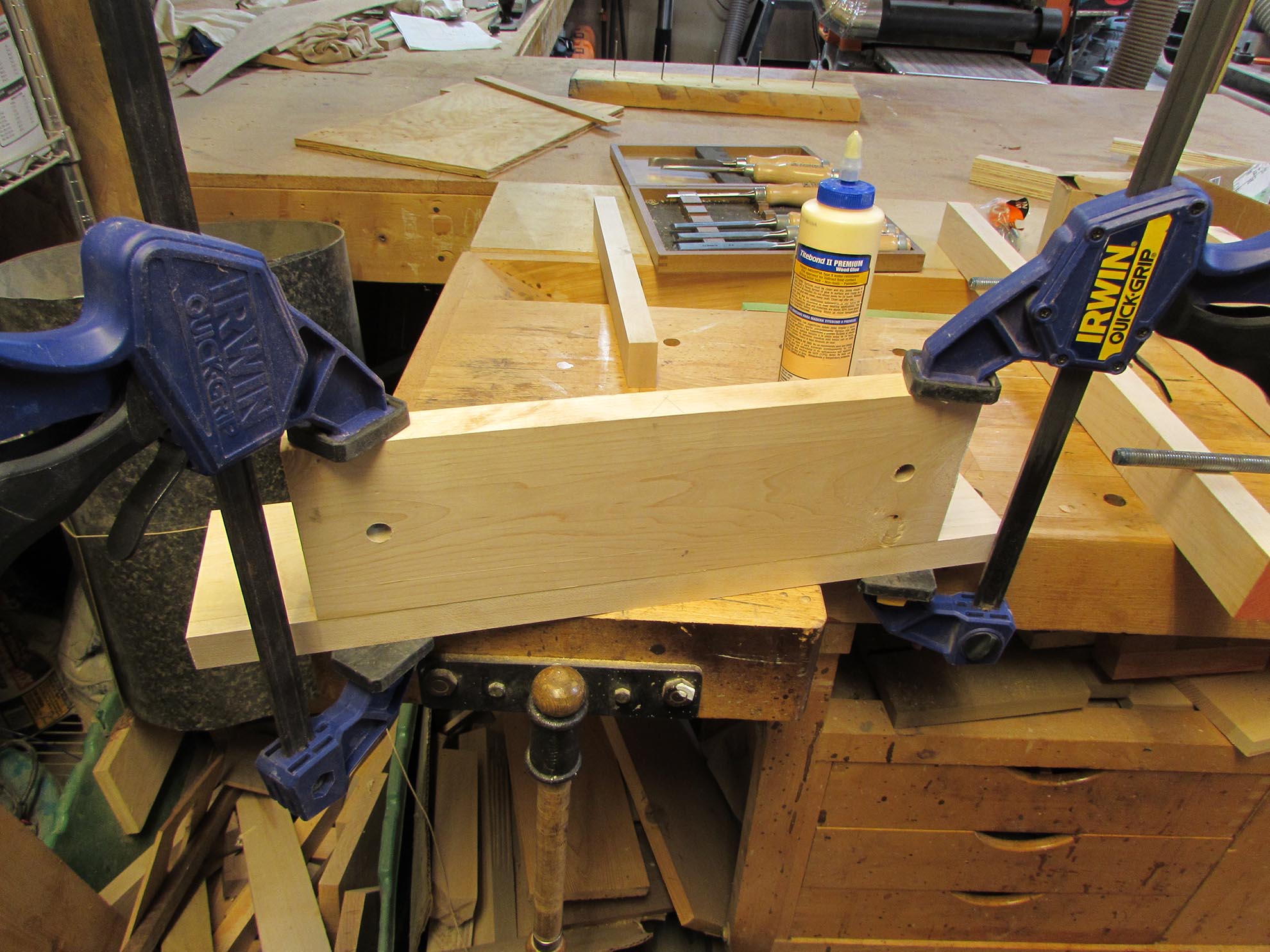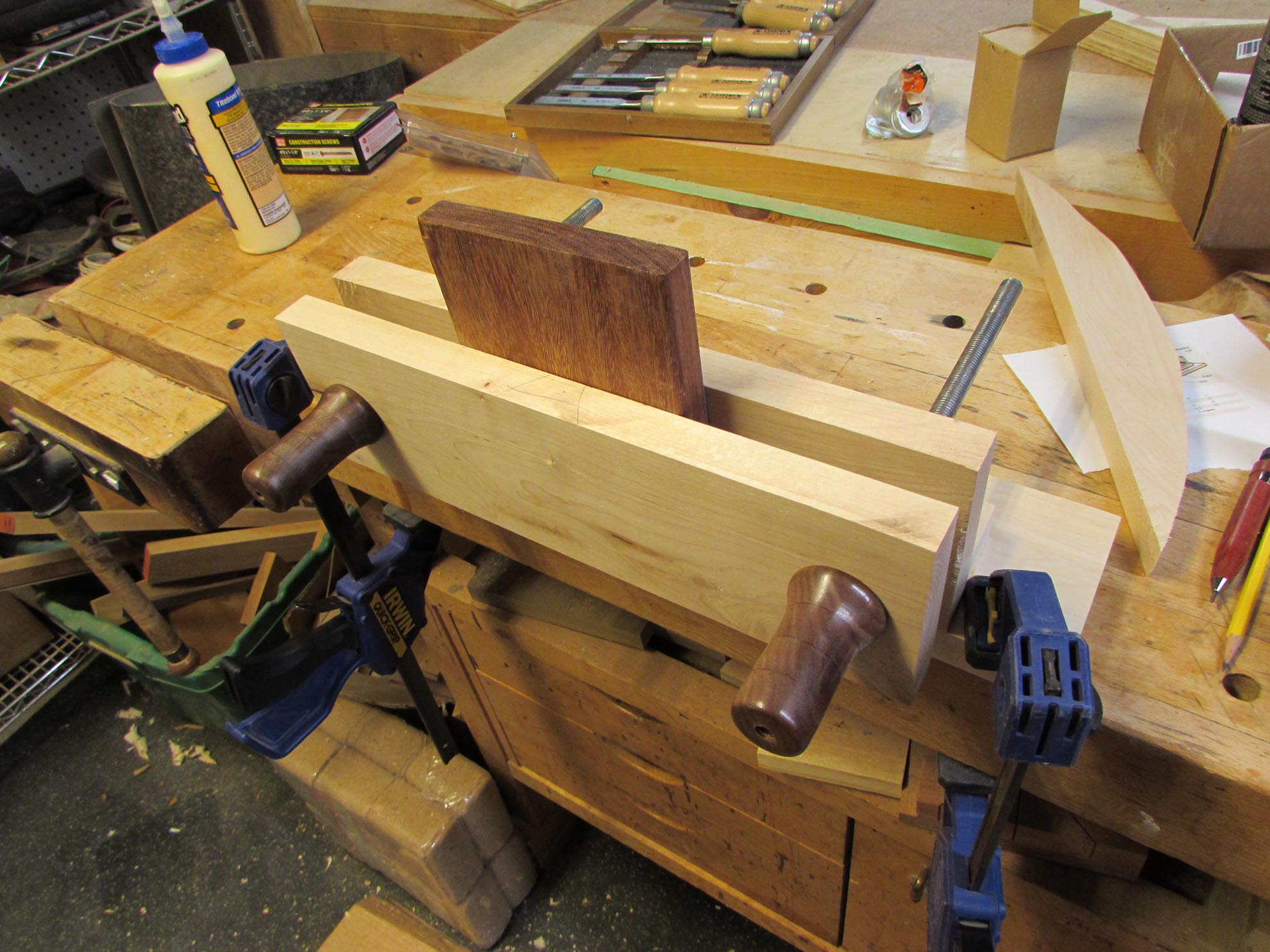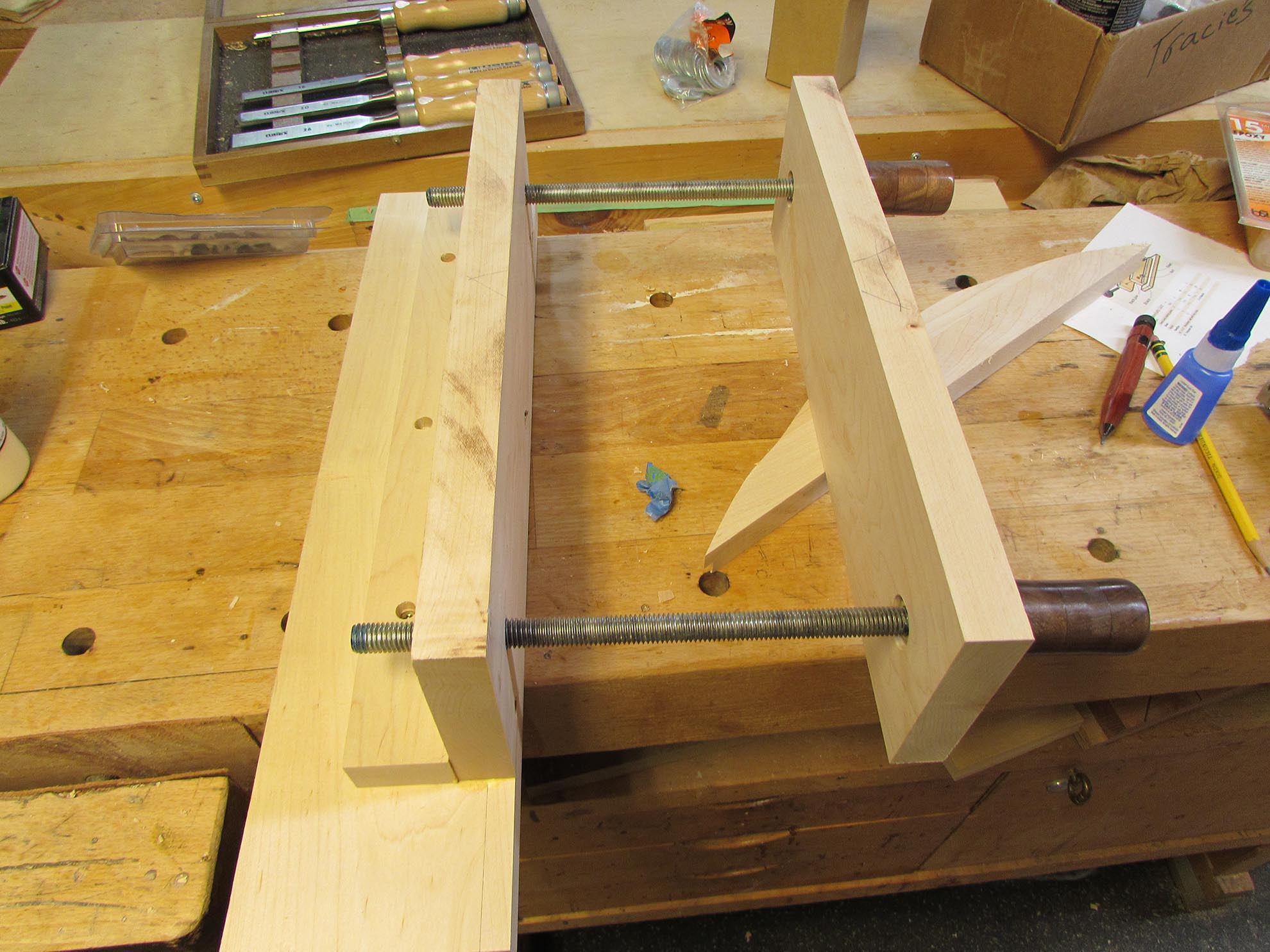 Next I started glueing and clamping the rest of the vise together.