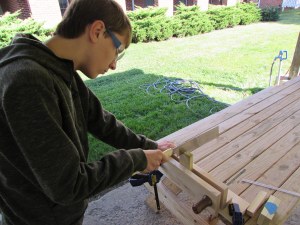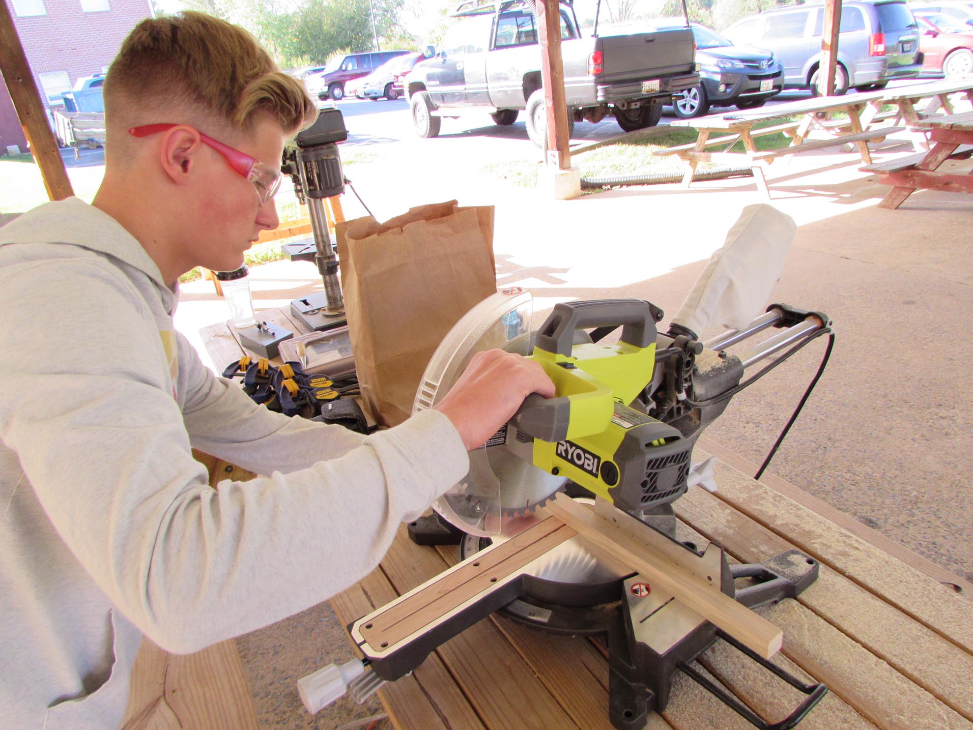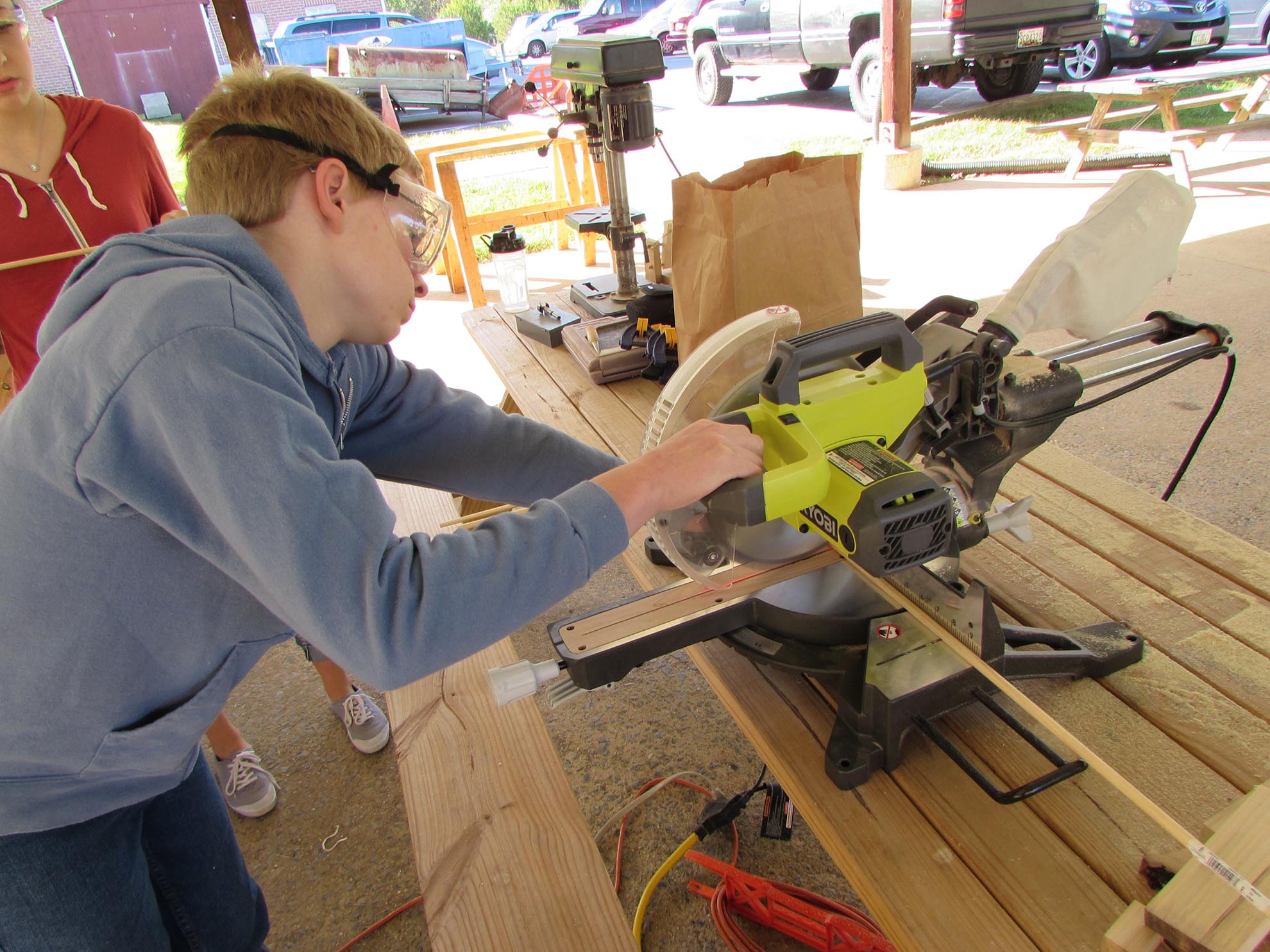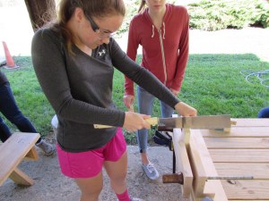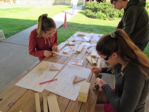 With only one saw, and my need to make sure everyone was working safely, they all took turns cutting each piece, then returning to the table to lay out the next piece.