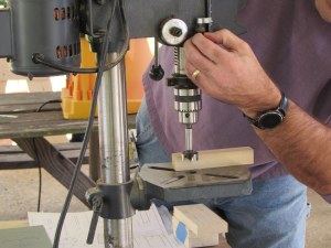 With all the holes laid out, I showed them how to install a bit and set the depth stop, on the drill press.