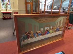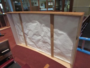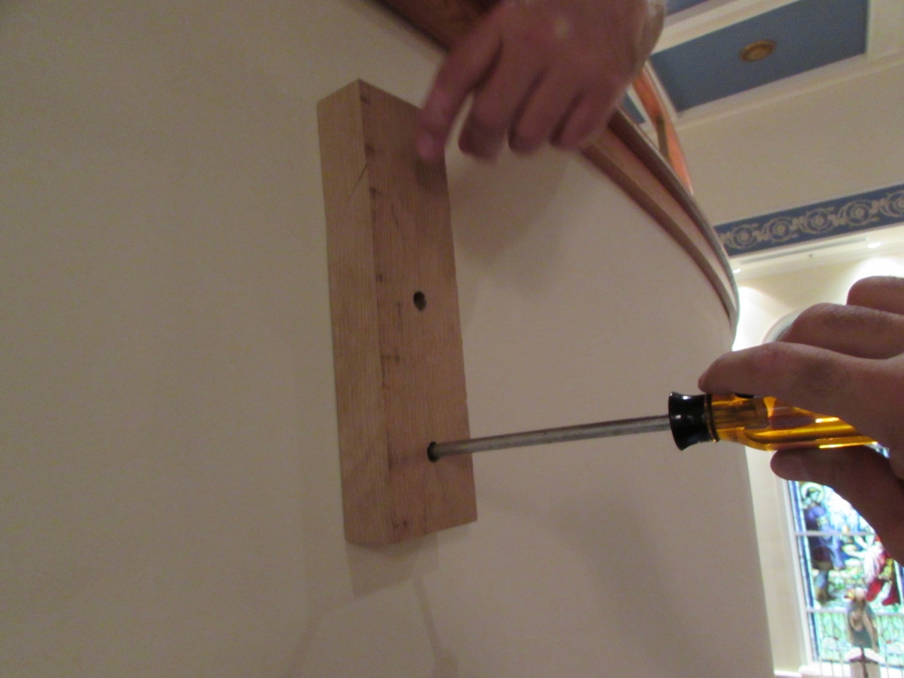 I made up some blocks to use as French cleats, to hang the picture. I wasn’t sure how long it would take to hang so I took off the day before our last class and asked the church maintenance guy, Ryan to give me a hand.
