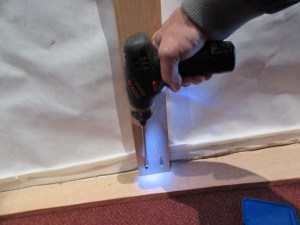 We gently rested the frame in place, then I screwed some finish screws through the frame into the top blocks.
