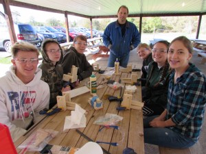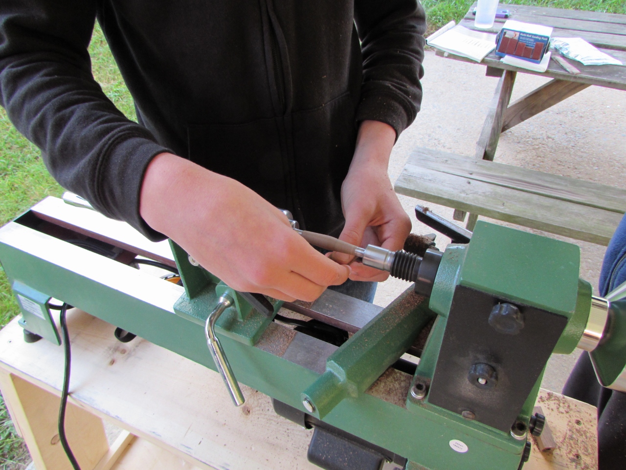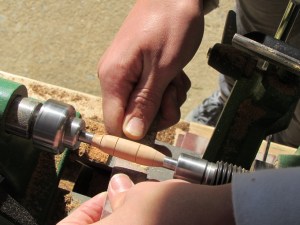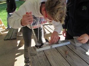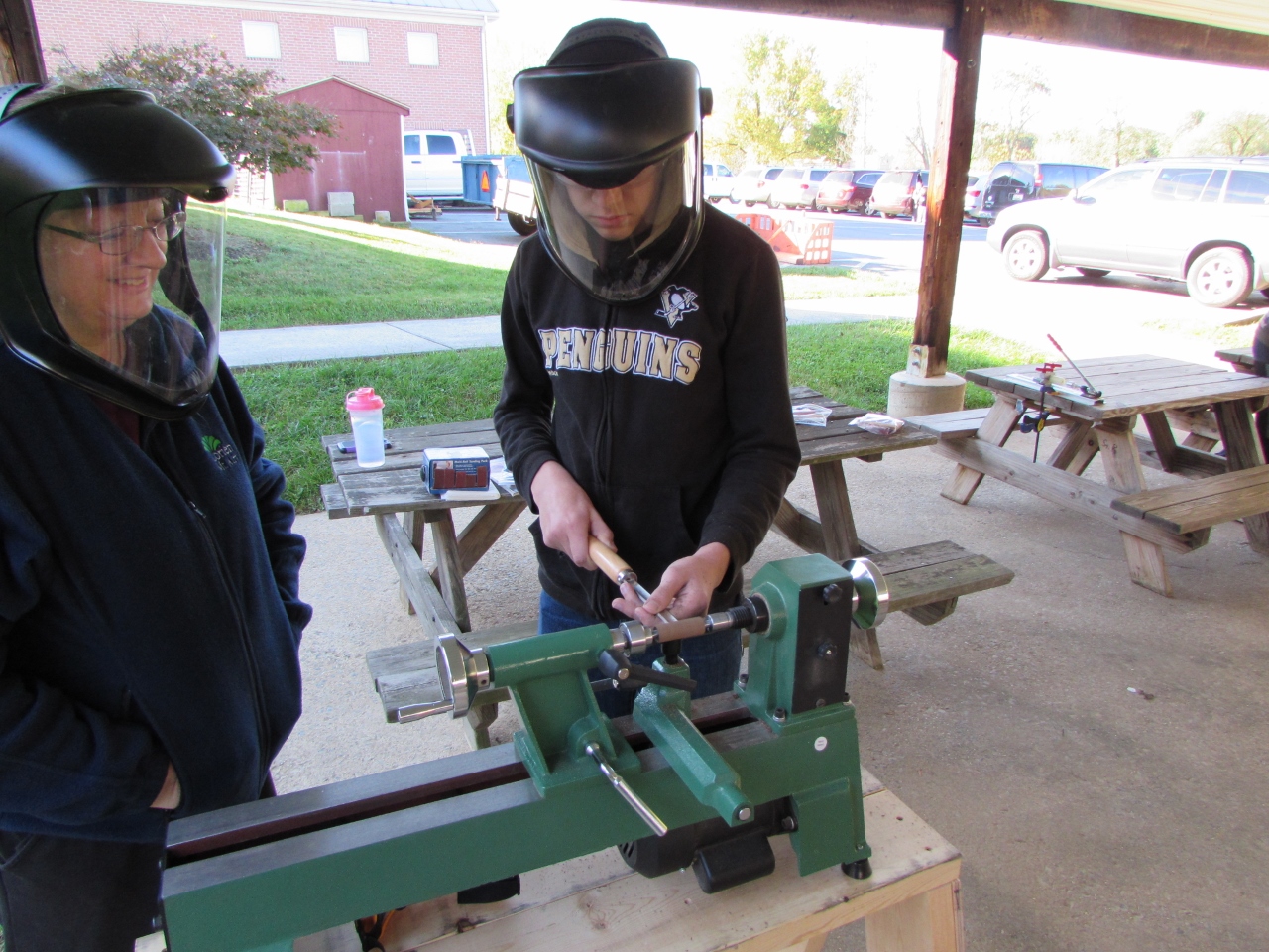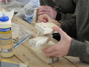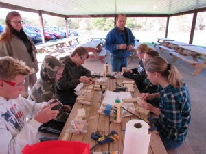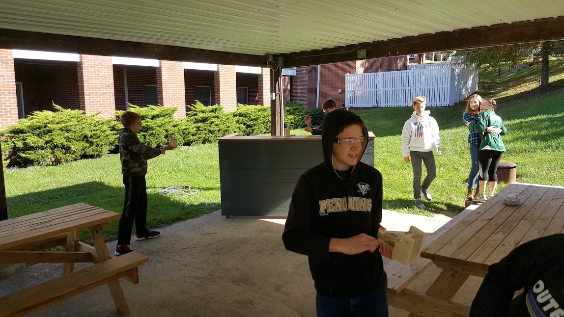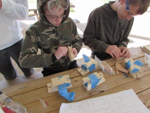 Kaleb finished up his pen and got a late start on sanding his parts, while the rest of us started playing with the brad nailer…