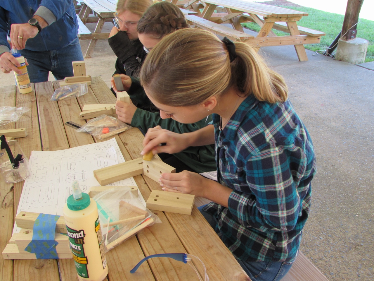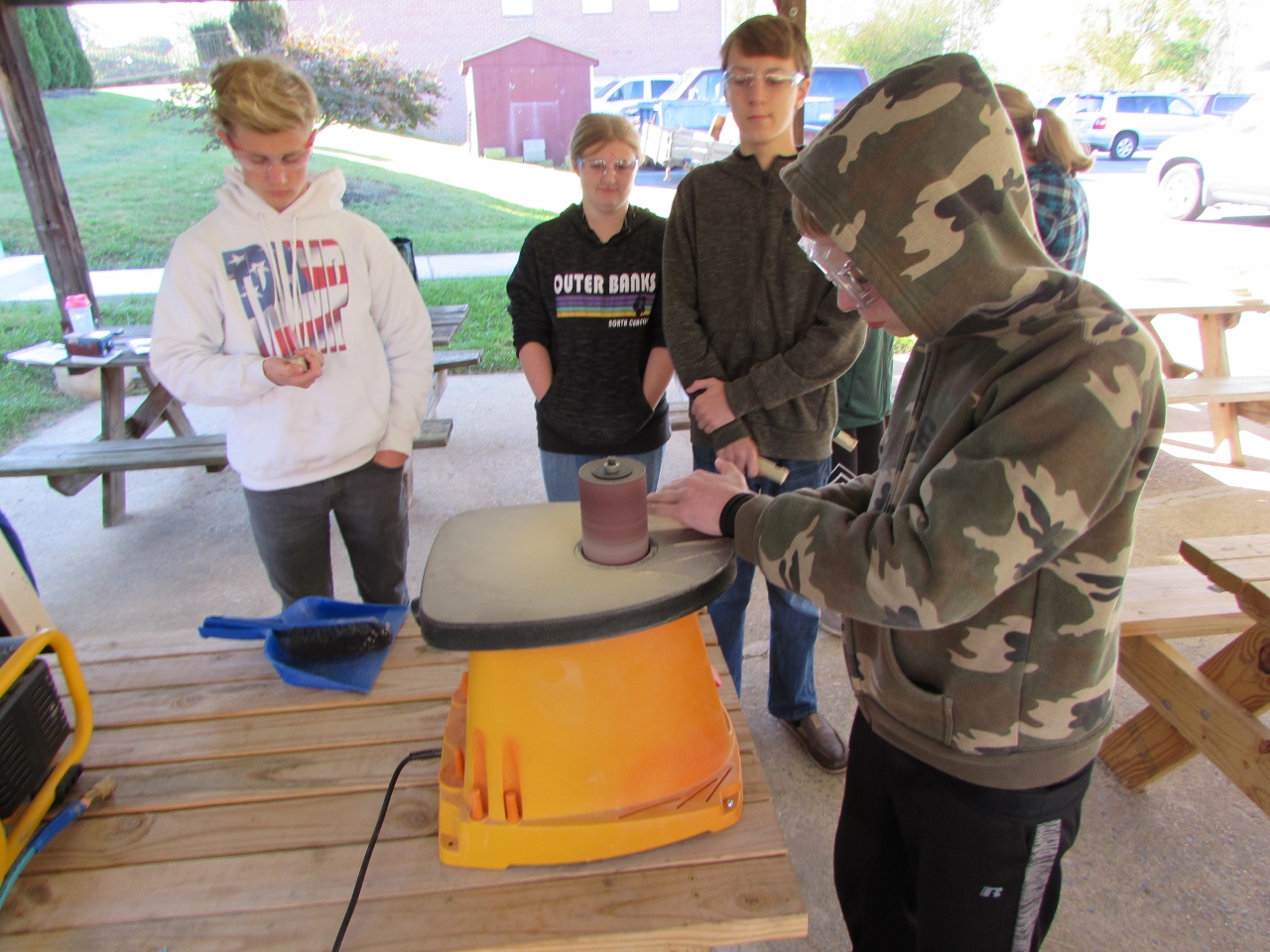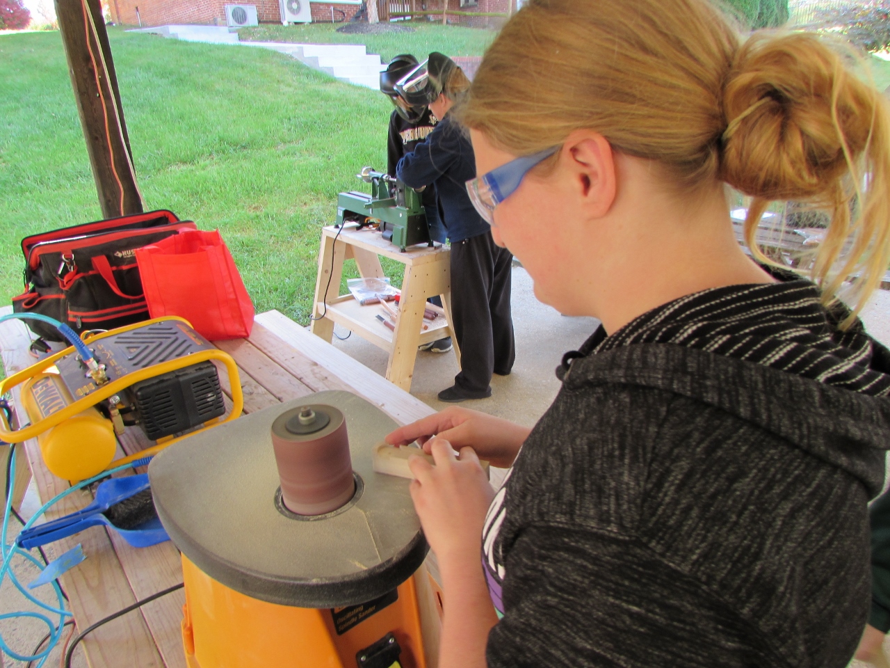 Everybody is getting more comfortable with the tools so I could let them spread out and work on sanding and prepping the parts for assembly.