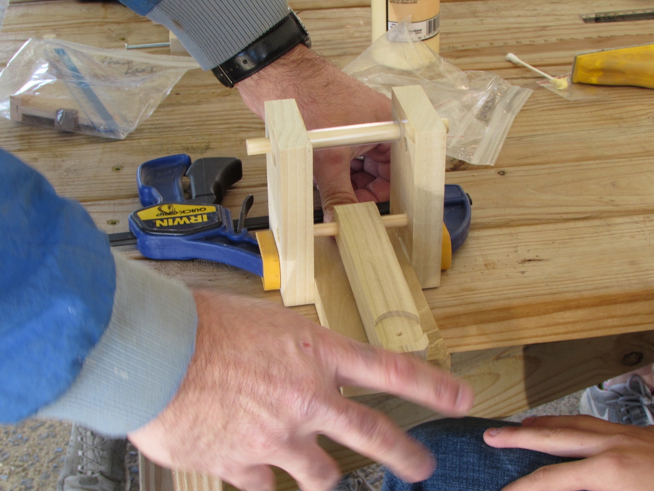 The last day of class started with one of the students getting started on his pen while I explained the process of assembling our catapults.