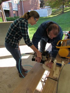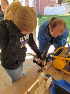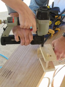 Once I showed them how the nailer worked, they all took a turn nailing on the sides, then we pulled off the clamps.