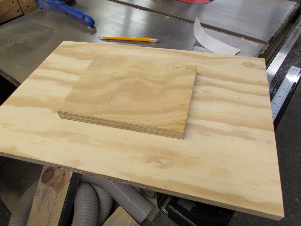 First off, I needed a flat board to mount my grinder to. I had a scrap piece of 3/4″ plywood that was about the right size, but a bit too dirty for a project. To clean it up, I ran it through the new drum sander. That was a really nice convenience. Normally I would have spent a few minutes sanding it down with my orbital, or just left it ugly…