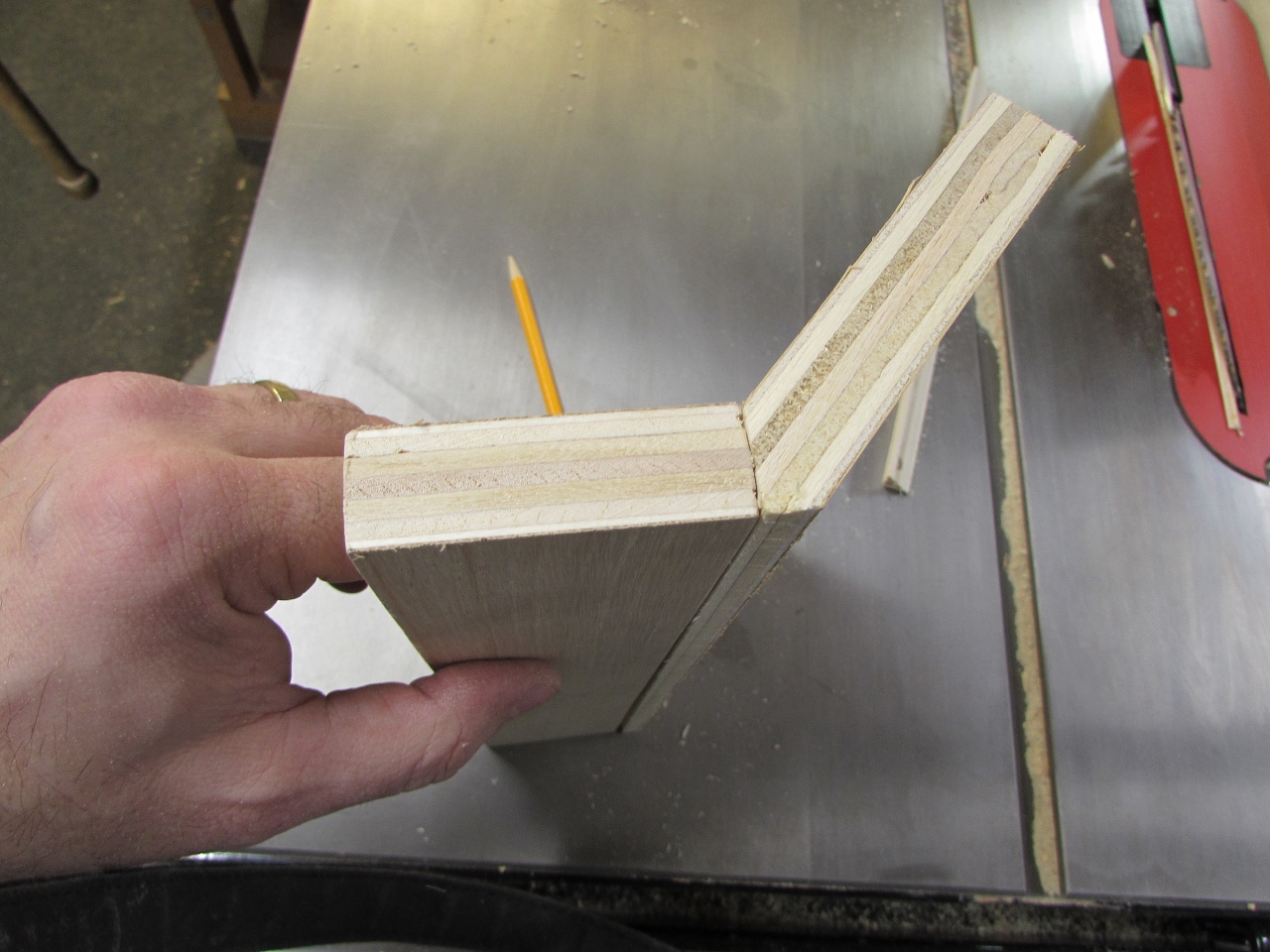 I cut a 2″ lip, for the front and put a 45 degree angle on the edge of both, then held them together and scribed a line to show me where to cut away the excess, removing a sharp edge.