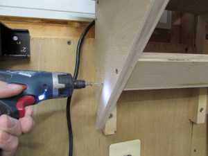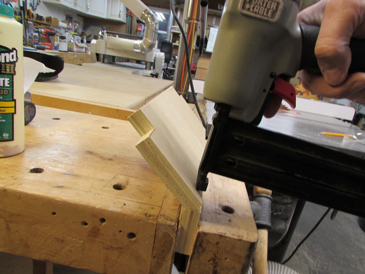 Next, a little glue and some brad nails and the shelf was ready to be installed.