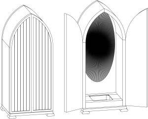 I have had this project on the back burner for a couple of months now. The design has been the big hold-up. Normally, I can easily discern a design that meets the requirements of a project, but this one is challenging me. What I have been handed was a statue, that stands about 20″ tall and weighs about 5 pounds +/-. The requirement was to build a cabinet to house and protect the statue, but also it has to be an attractive display. The thing is, that it will be travelling from house to house, about once every week. This means, that it has to be durable, but lightweight. Also, since it will be bouncing about, the statue has to be firmly fixed in place.