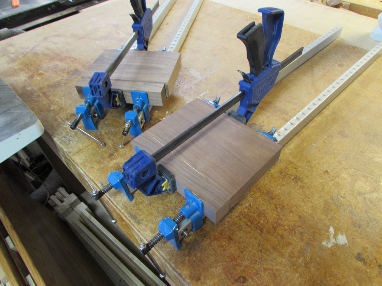 And, after cutting the exact pieces that I needed, I determined that they were an inch too narrow… Since I don’t have a lot of wood, that thick, I had to glue another bit to the blanks I already cut.