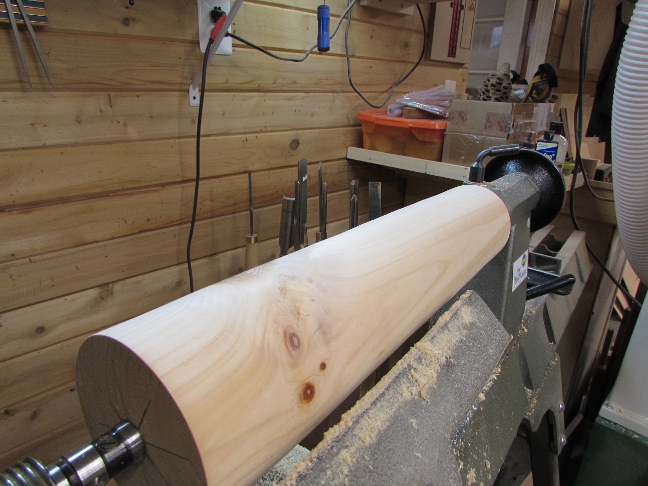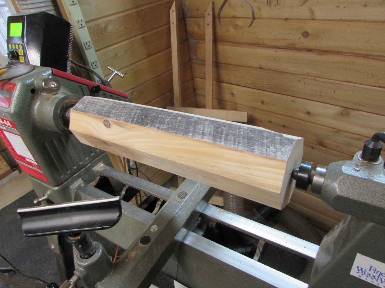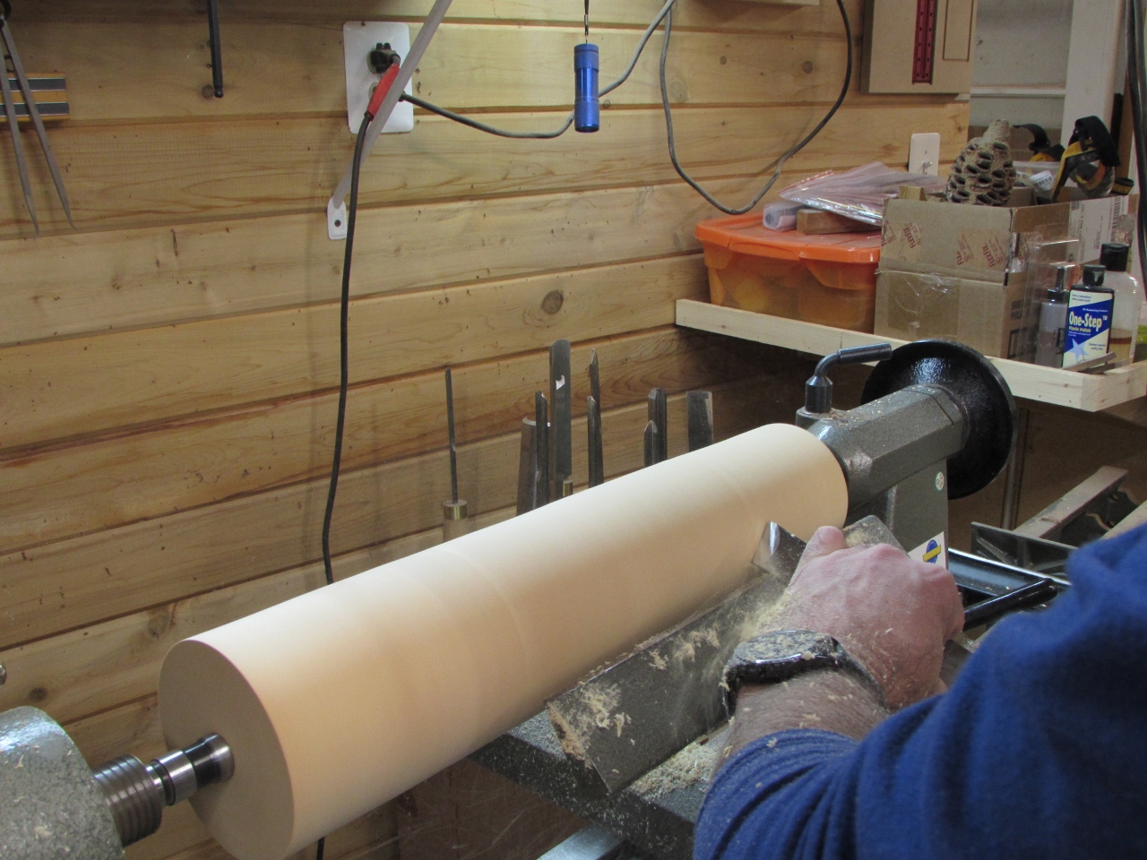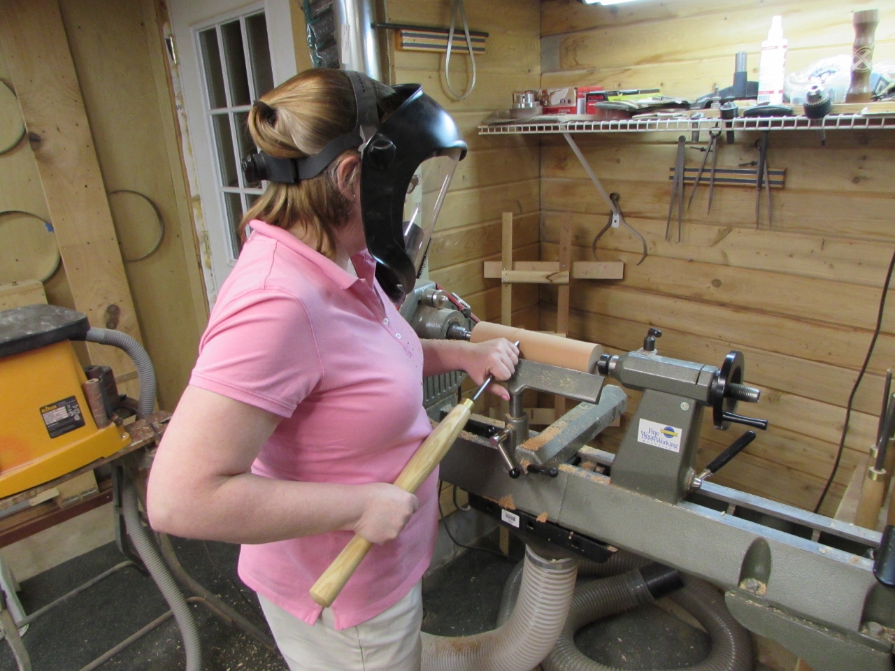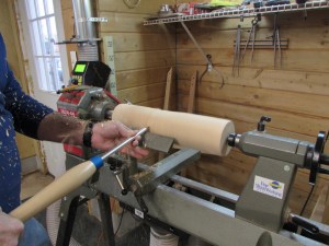 While I was working last night, my wife came down to play on the lathe. So nice to have company occasionally.