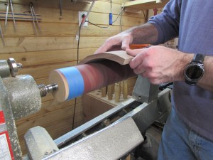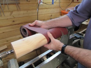 I set my lathe speed to 500 rpm’s and started sanding. It worked perfectly. I just had to be careful not to over-sand the ends and create a bevel as I pulled the wood off.