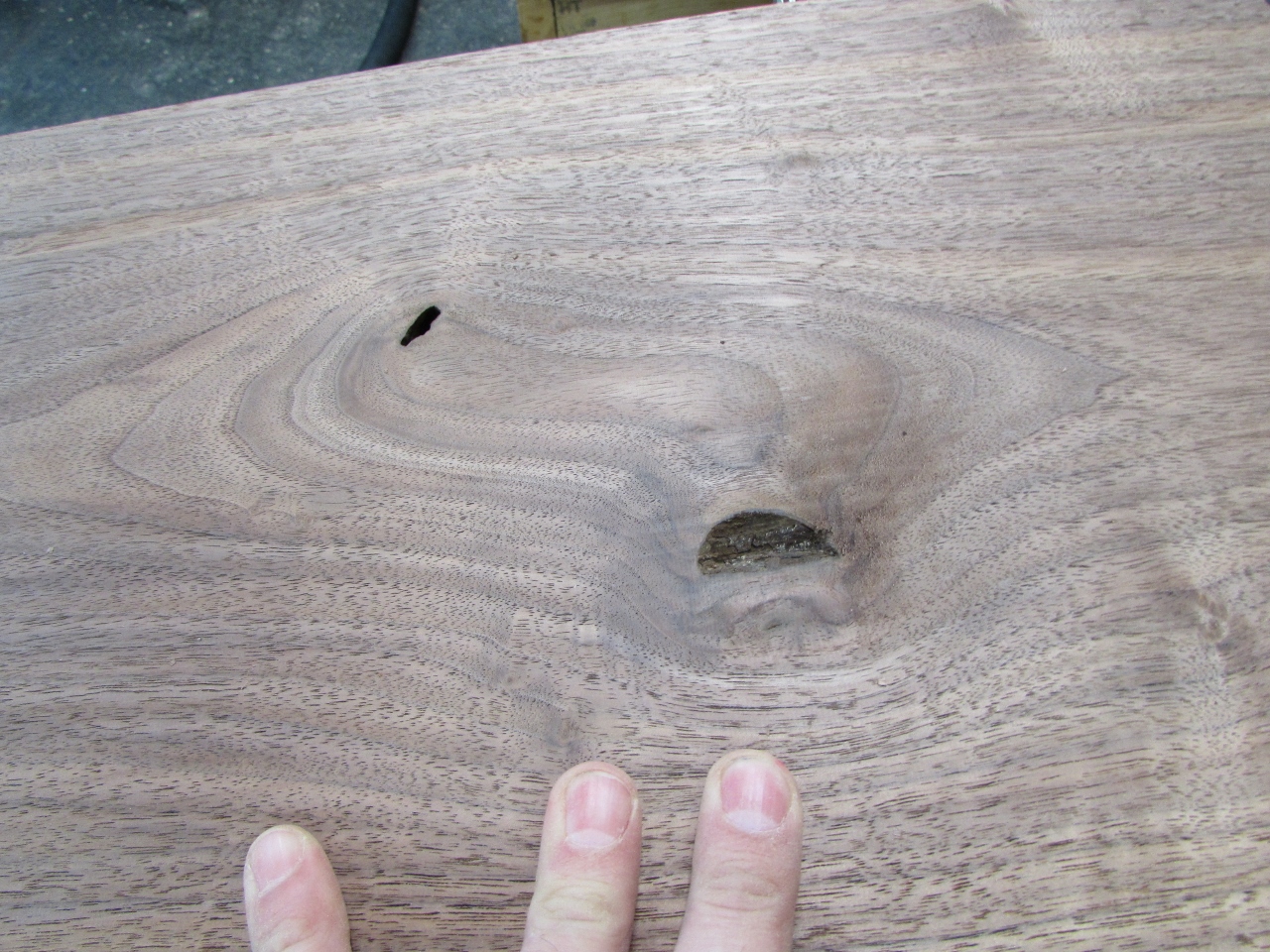 I am using a 1/4″ blade that has 4 teeth per inch. It seems to cut well through the 7″ of walnut, as long as I take my time.