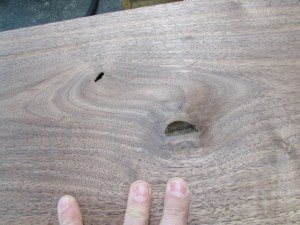 While I was working on those curvy pieces, I also had my CNC running, carving the doors out. I planed down a large piece of walnut, down to 5/8″ thick, and cut a blank to run in the CNC. I am amazed at the complete lack of tear-out around the knots, with my new helical head planer.