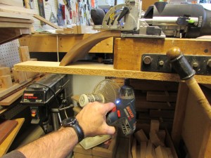 I applied the epoxy to the dominos and the end of the board. I then applied wood glue to the back of the arch and clamped everything in place.