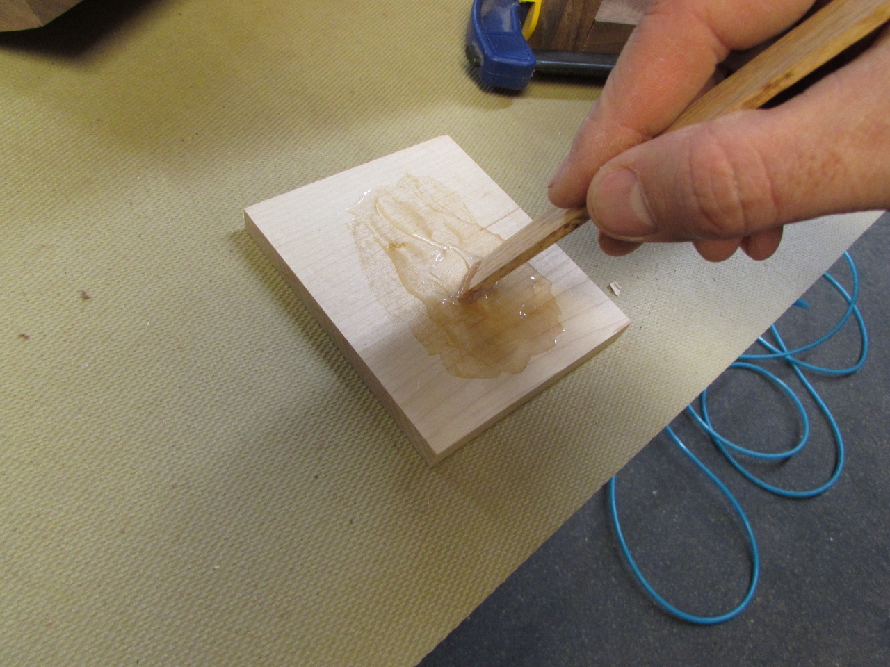 I wanted to seal it with a finish that dried quickly so moisture wouldn’t soak into the wood when I painted it. Moisture soaking into only one side will make the piece curl.
