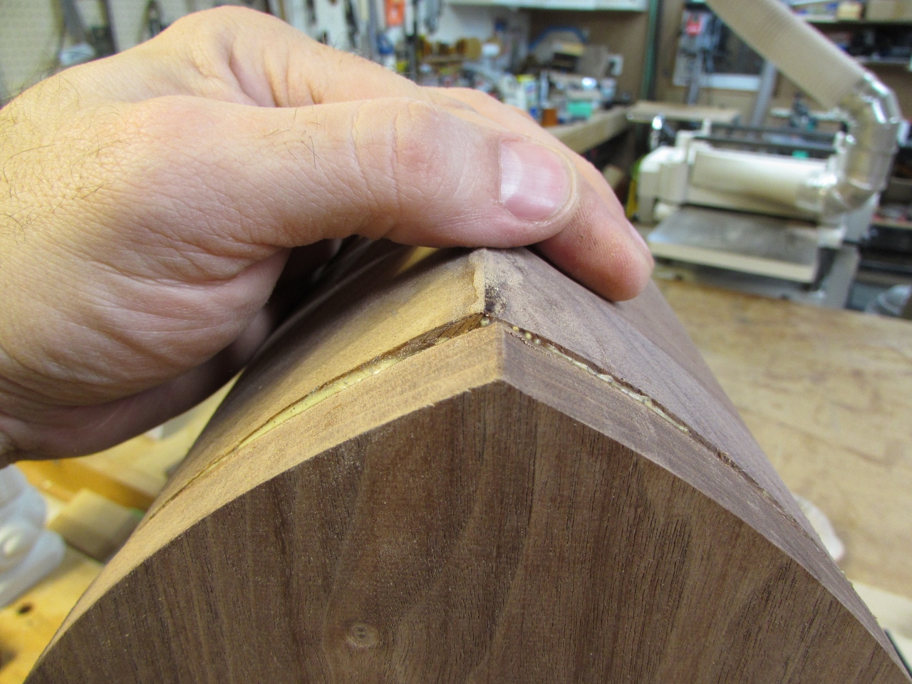The top may be a bit thinner, but the shape looks a lot better. Besides, losing a bit of wood off the top will only make the cabinet lighter…
