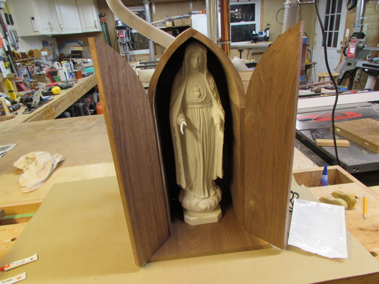 A test fit of the statue shows that the sunburst falls completely in shadow. That kind of stinks.