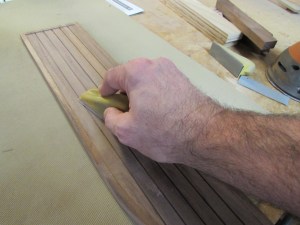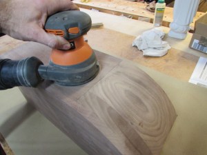 I tried several different ways to quickly sand this detailed piece, but in the end, a stiff piece of sand paper and about an hour of effort was the most successful method.