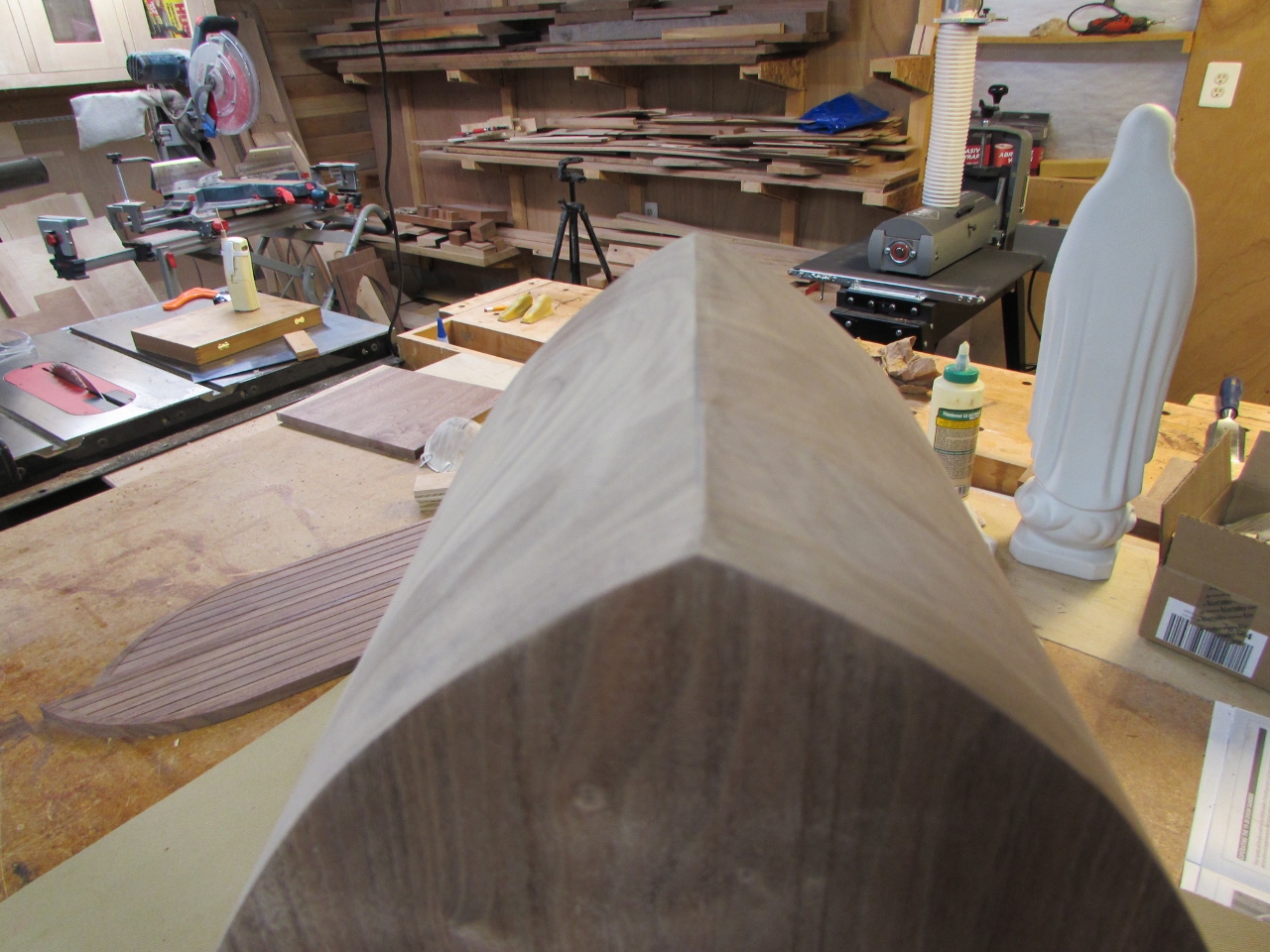 A little sanding with the mop sander did not improve the roughness of the carve much, so I am going to have to do some hand sanding.