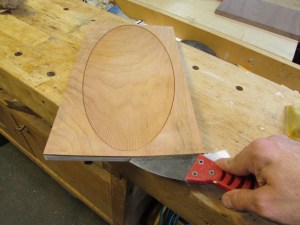 I think I have worked out my joinery issues, so before I tackled that, I started a carve of the sunburst for the back of the cabinet. It will take a couple of hours, so I will let it drone on in the background, while I work.