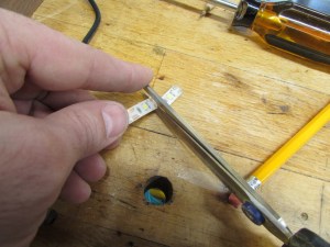 I remembered that I had a left-over strip of thin brass from another project and thought it might work well. I even had a couple of counter-sunk holes in one end.