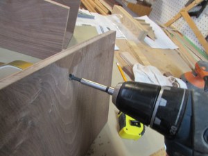 After drilling and counter-sinking them, I attached the front with two different length screws, making sure not to poke through the top face.