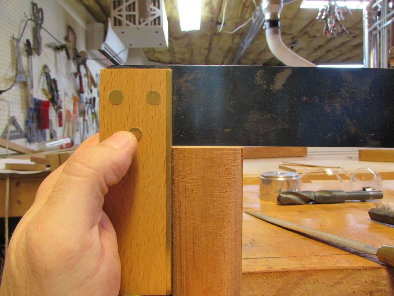 I forgot to take pictures of the magnets being installed, sorry. Nothing to it really, I set the magnet on the end of the metal stud, then measured the total length, then used my forstner bit to drill to the correct depth, and epoxied in the magnets.