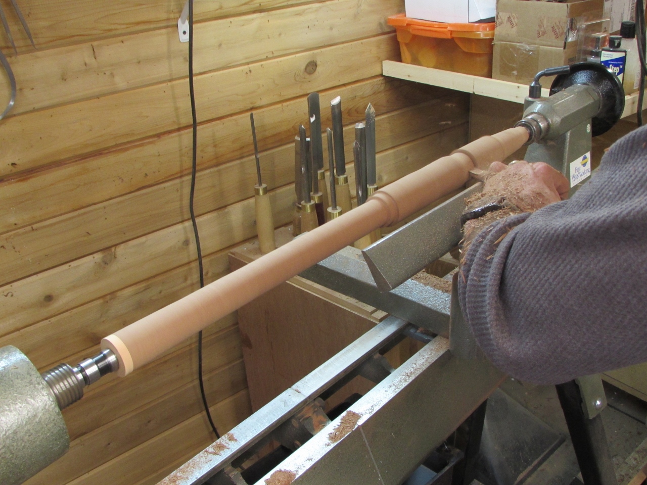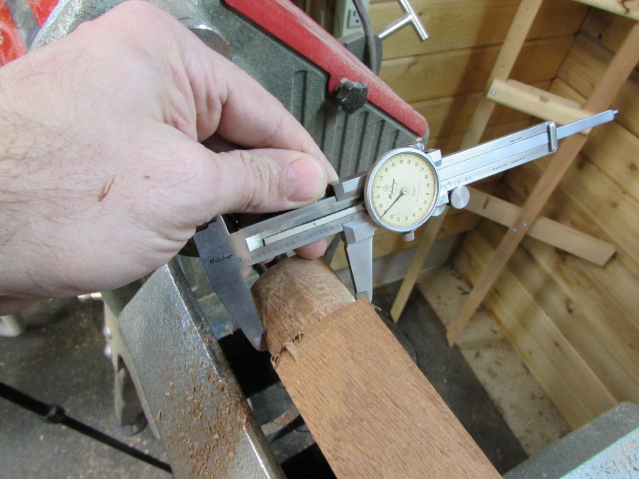 My staff will be 1-5/8″ at the top and 3/4″ at the bottom. The staff sections are 52″ long, so that makes the center section 1-3/16″. This gives me the dimensions that I need for my bushings.