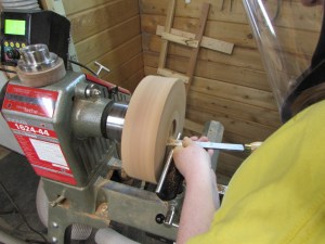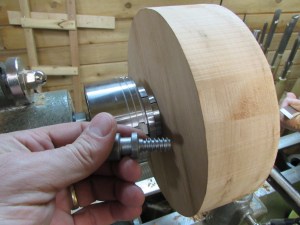 I am going to have her use a wood worm screw, mounted in the chuck, to hold the blank.
