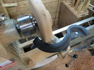I attached the curved bowl rest, to give her more support to continue sculpting the top of the bowl.