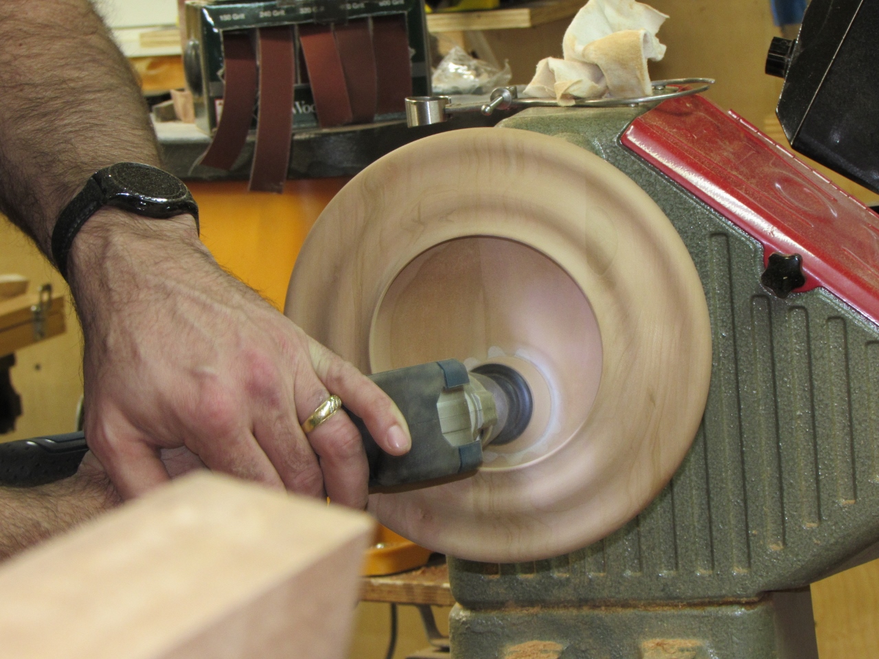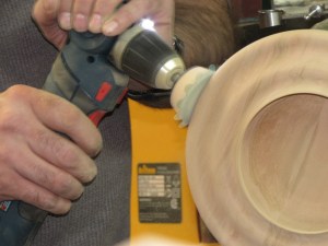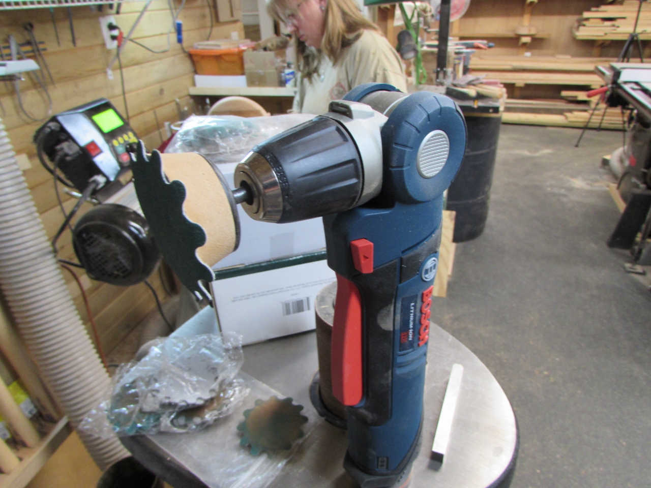 I recently bought an angled-head drill to use for bowl sanding, so I thought I would give that a try.